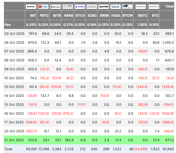 Bitcoin ETFs recorded a sharp rebound in flows this week after several days of political-driven outflows. On Tuesday, the funds saw $477 million in net positive inflows, according to Farside Investors, breaking a four-day losing streak.