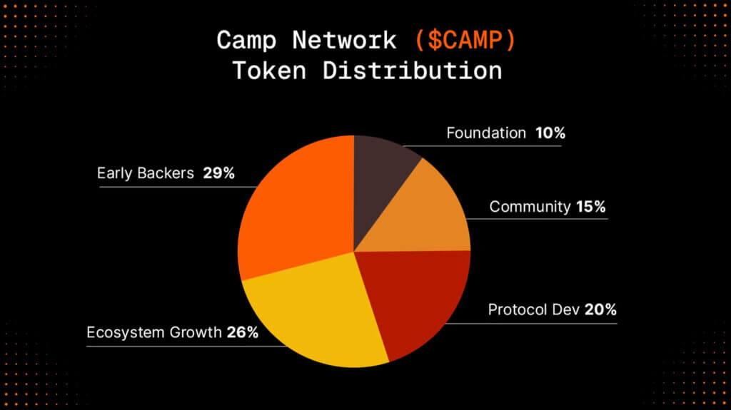 Having launched relatively recently in late August 2025, there are 10 billion CAMP tokens available to secure and monetize the network, of which 2.1 billion are in circulation. Early backers hold the most tokens, at 29%.