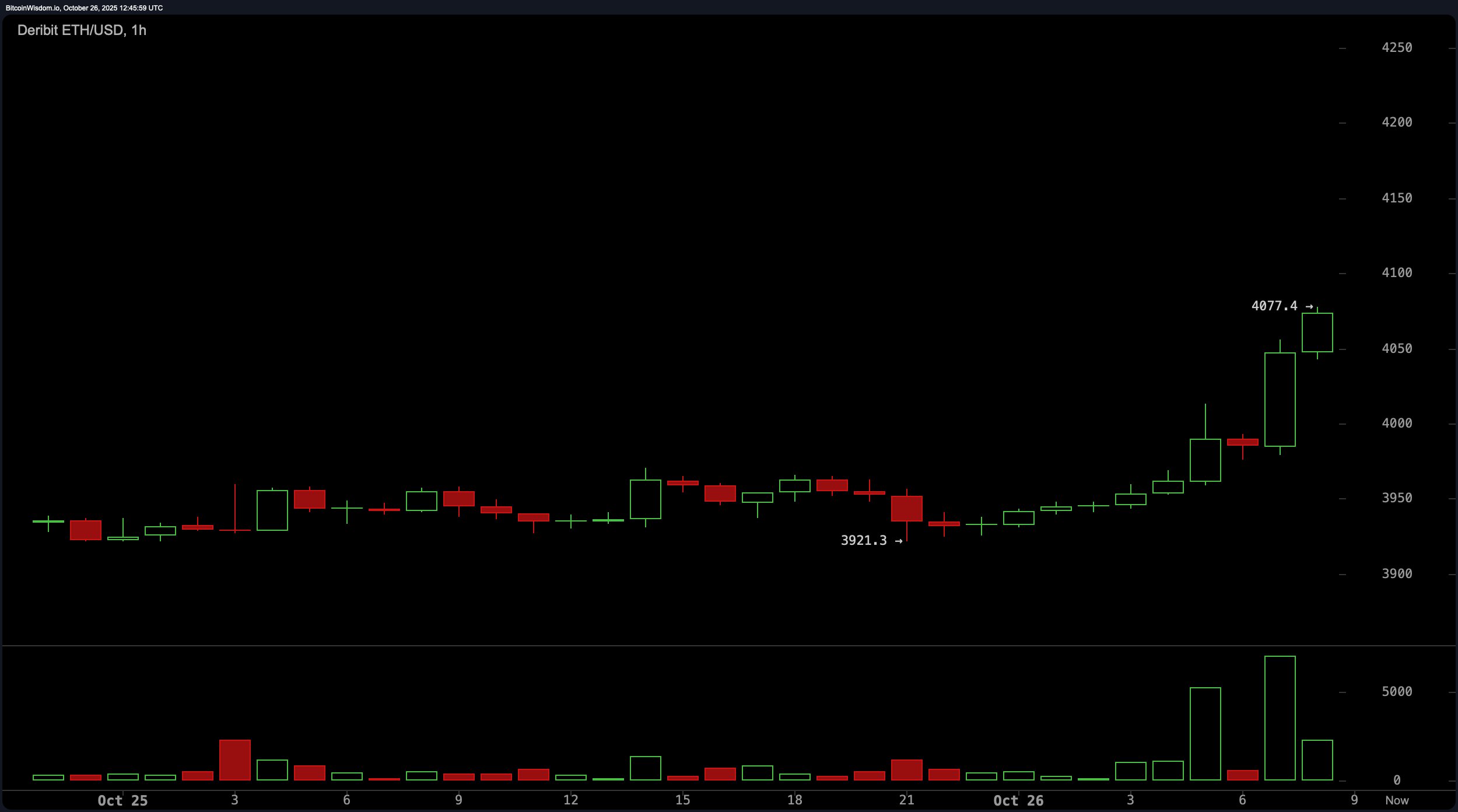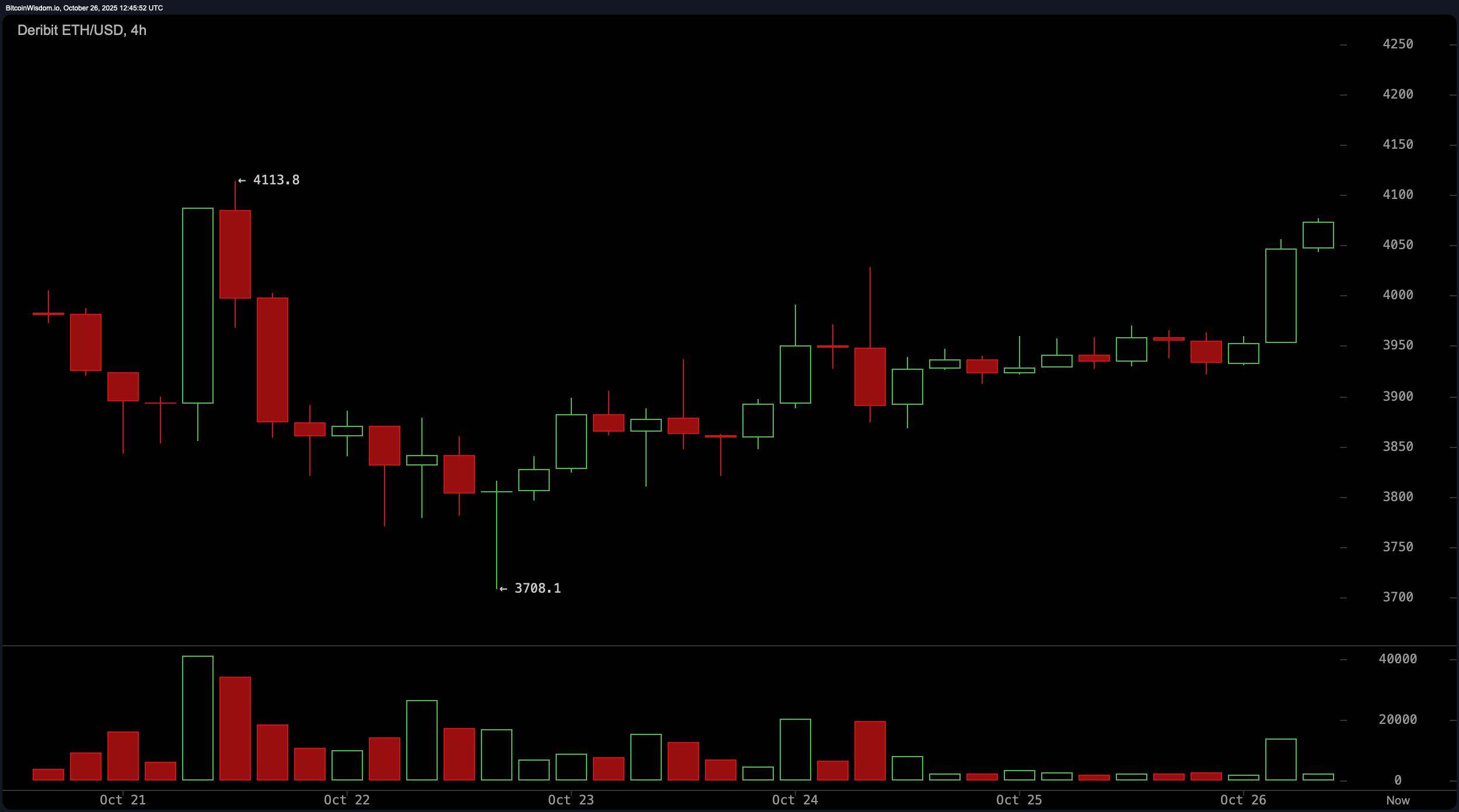 Ethereum on Sunday, Oct. 26, is standing at $4,070 per unit, moving within an intraday range of $3,926 to $4,081.90, while racking up $16.27 billion in trading volume and holding a market cap of $489 billion. The asset is testing overhead resistance with renewed momentum, though its long-term trend remains mixed across technical indicators.