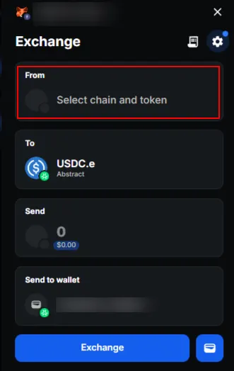 Deposit USDC on Myriad using “From a crypto wallet.”