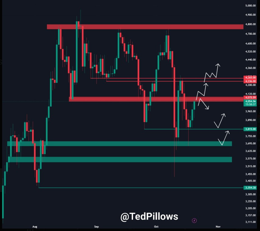 Similarly, analyst Ted Pillows pointed out that the top altcoin is making a very important move towards the $4,100 mark. He said that breaking through this level would signal the end of the recent downtrend of Ethereum.