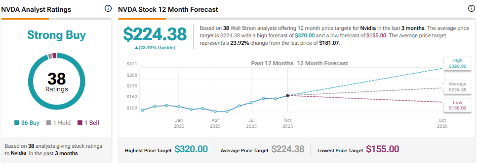 A total of 38 analysts project an average Nvidia stock price target of $224.38 for the next 12 months. The figure translates to a 23.92% upside from the current price, according to the market research platform TipRanks.
